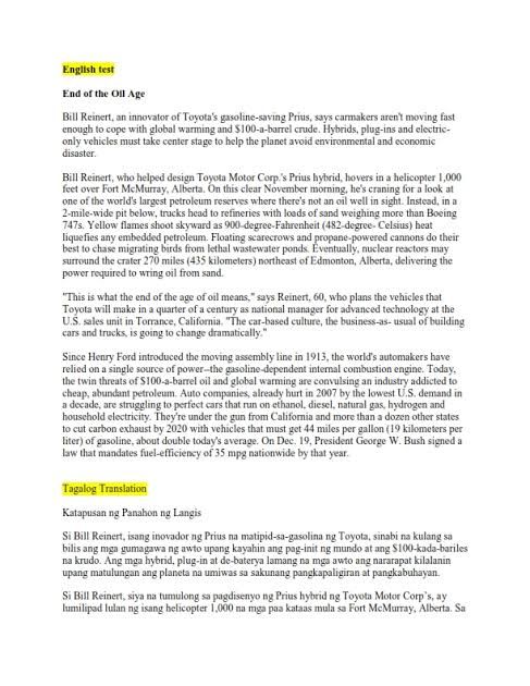 Spanish to English Translation