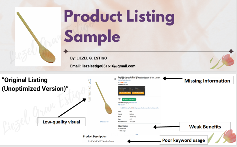 Product Listing Auditing and optimizing existing listing and Creating an unoptimized product listing